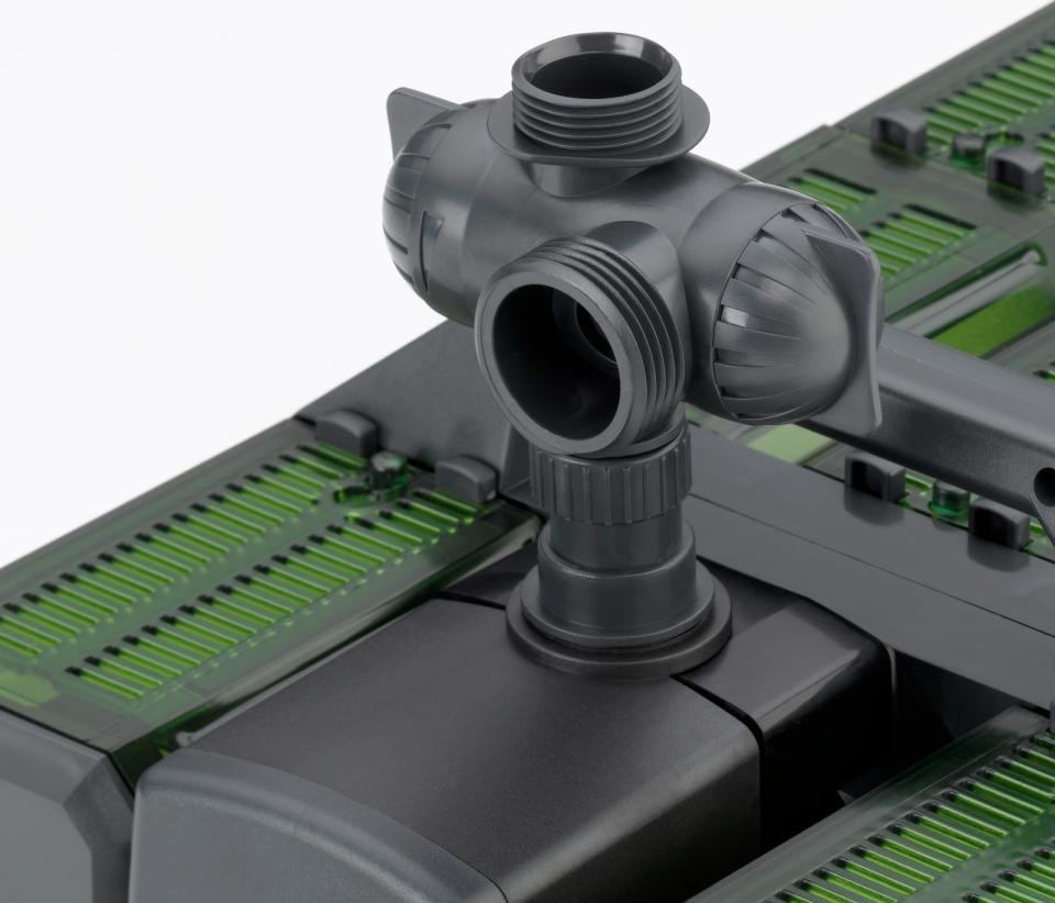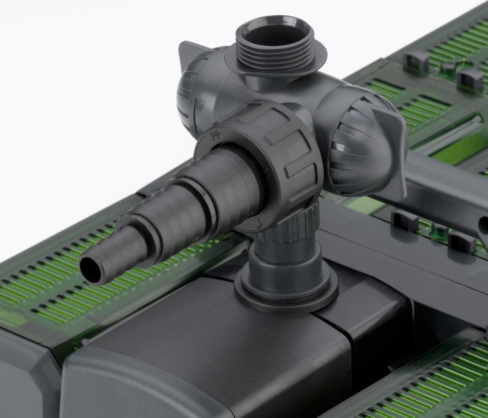 • Justerbart vattenutlopp: Används för vattenfunktioner, strömflöden eller anslutning till UVC-klarnare.